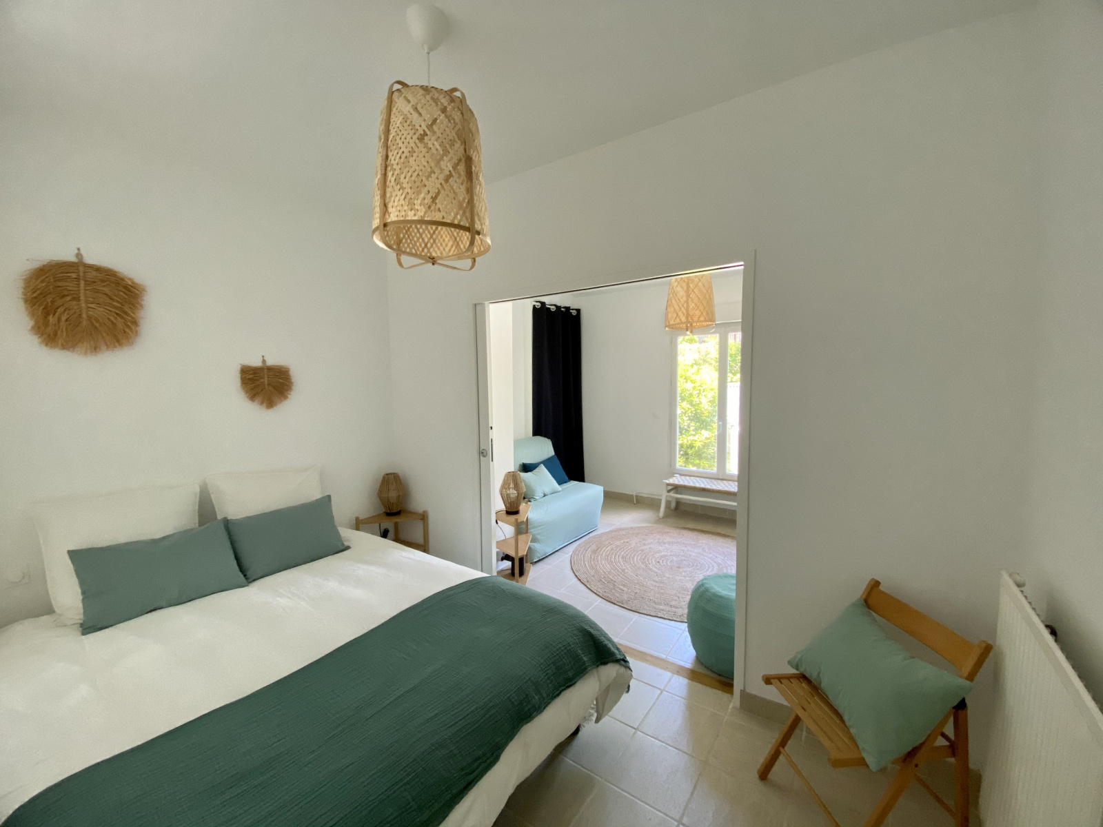 L’espace nuit se compose de quatre chambres dont trois au rez-de-chaussée, un bureau, deux salles d’eau dont une avec douche à l’italienne et une salle de bain.