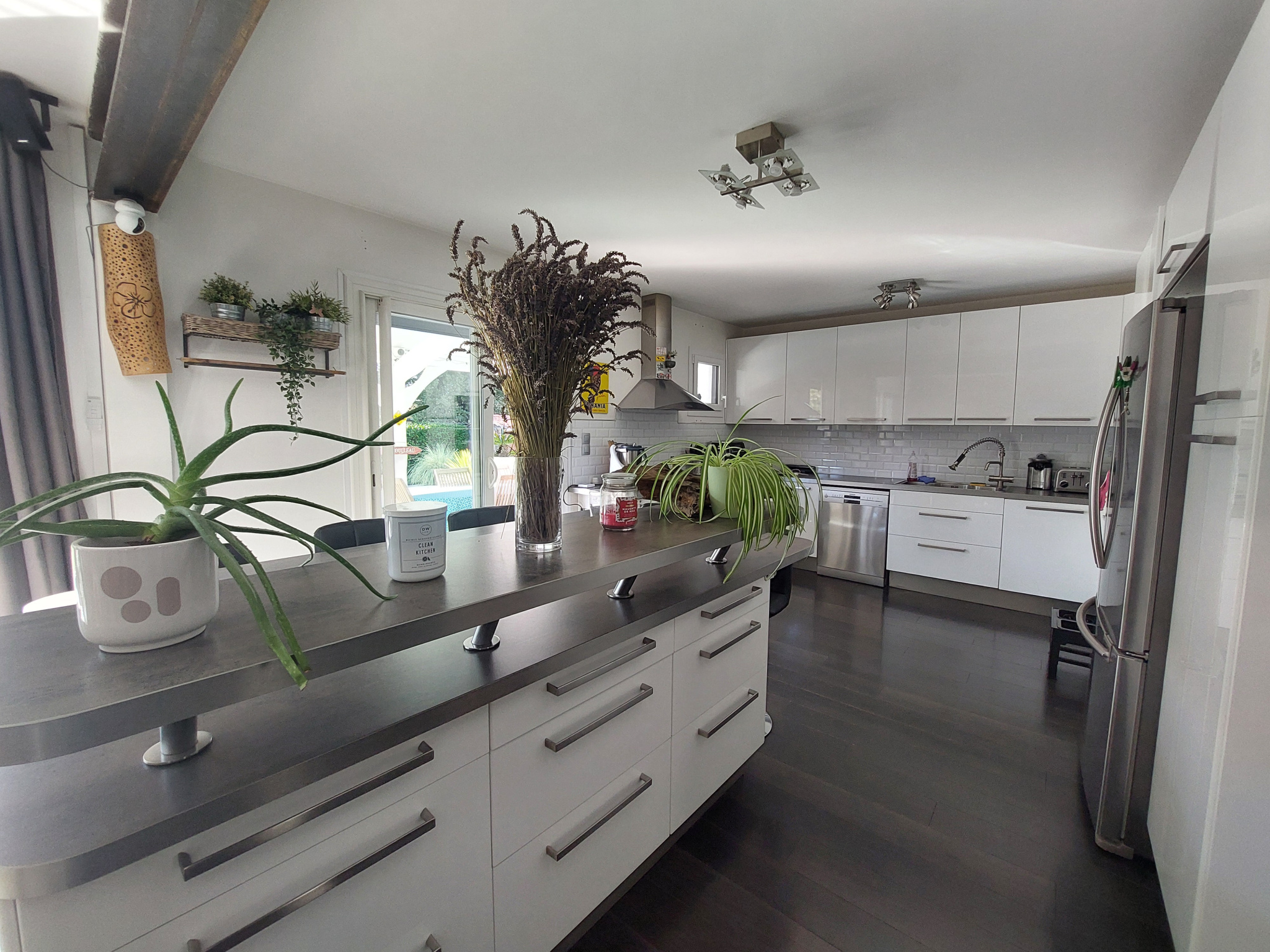 L’espace de vie principal se compose d’un vaste séjour baigné de lumière, prolongé par une cuisine ouverte entièrement équipée.