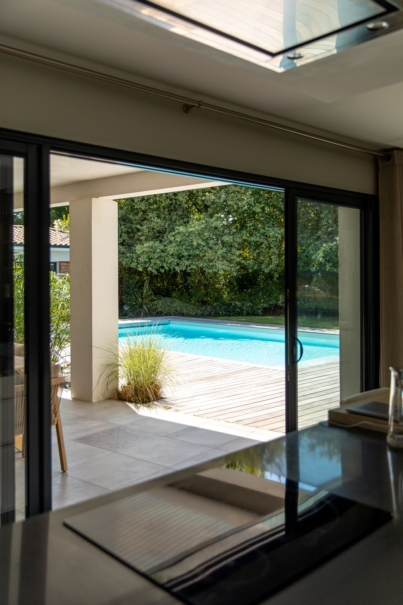 Posée sur un terrain de 2 180 m², la maison s'offre un écrin de verdure préservé. Profitez des beaux jours sur la grande terrasse, plongez dans la piscine, ou laissez simplement les enfants s'épanouir dans ce vaste espace vert en toute sécurité. De nombreuses places de stationnement complètent cet ensemble parfaitement pensé pour le confort du quotidien.