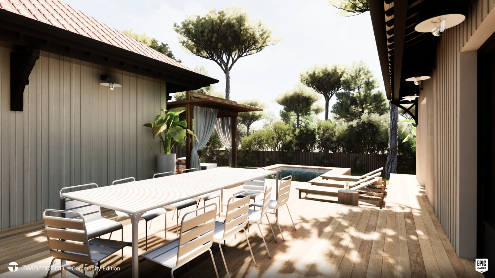 A l’extérieur, un coin repas ombragé, une piscine, un terrain de pétanque, de nombreux espaces de détente et un garage.