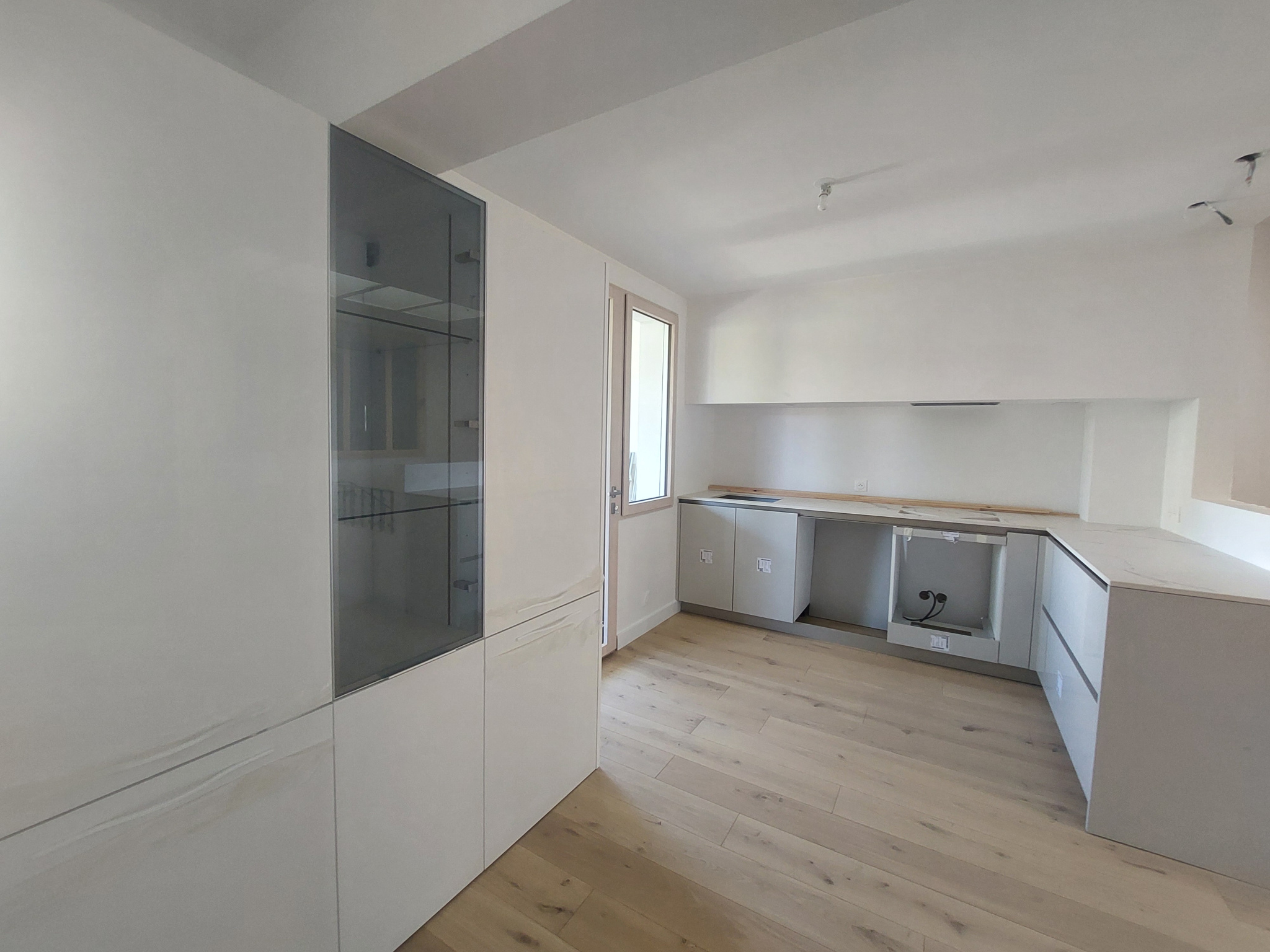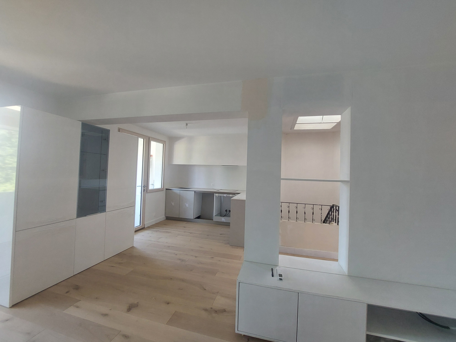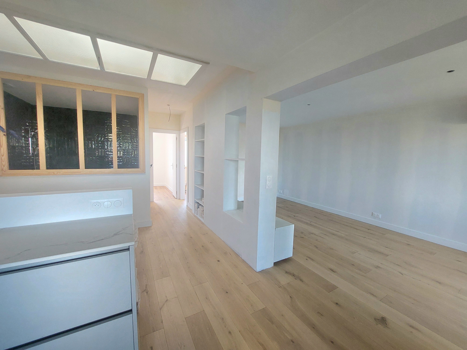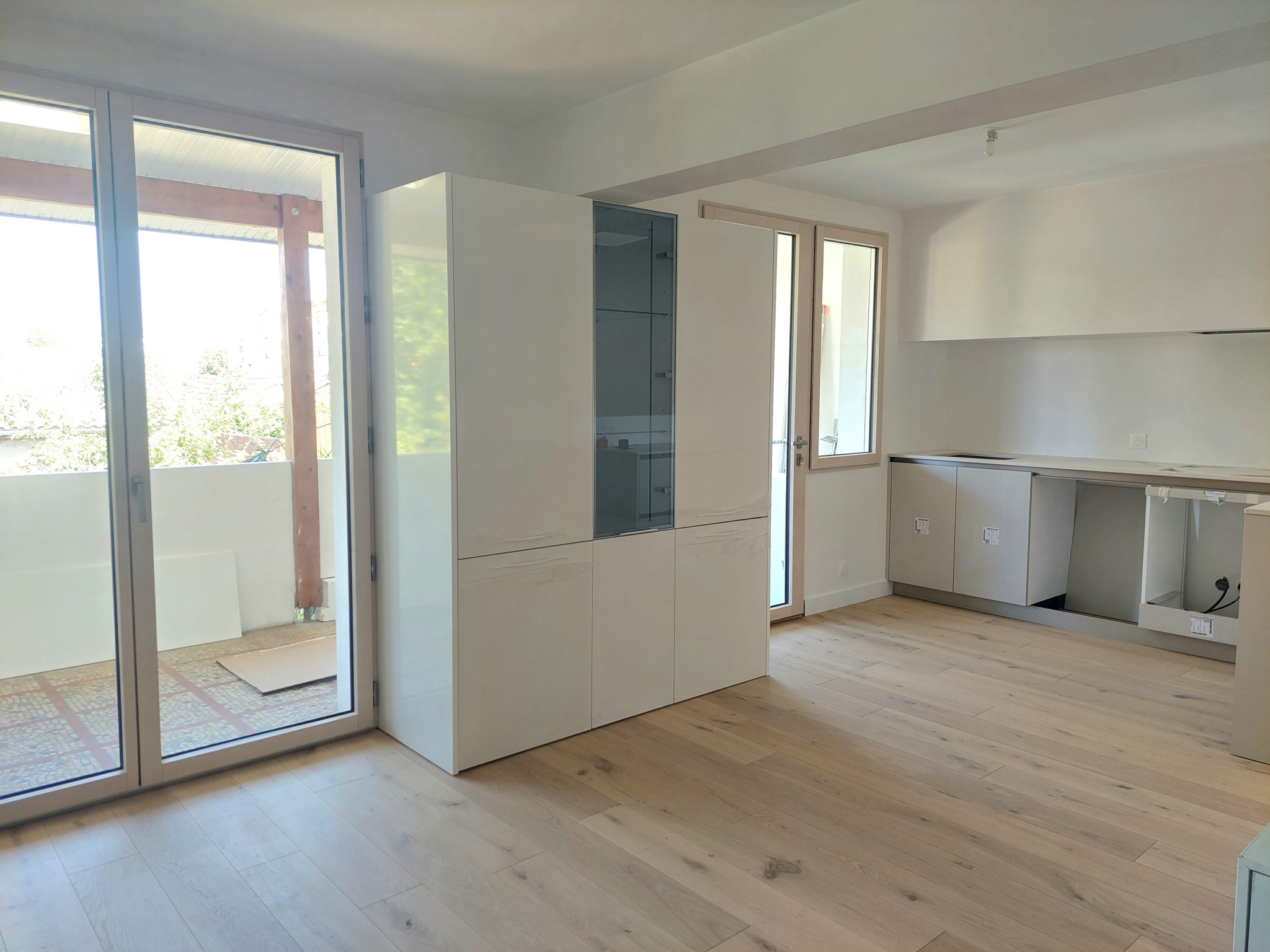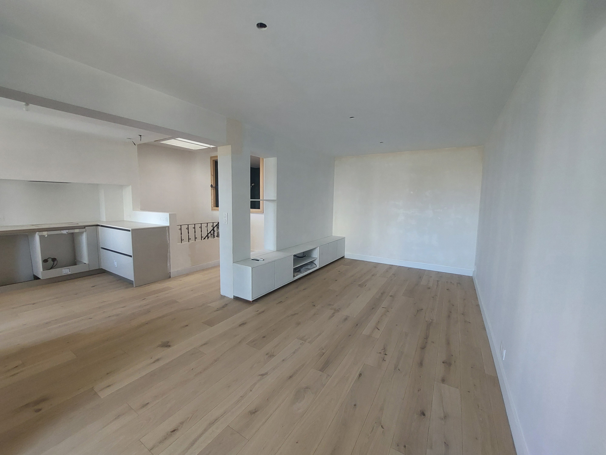 Une pièce de vie lumineuse avec cuisine ouverte, donnant sur une terrasse couverte de 13m²
